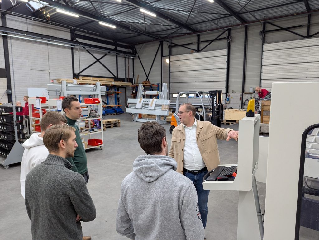 Daarna volgde een rondleiding door de werkplaats. Hier zagen we van dichtbij hoe er gewerkt werd aan diverse Window Masters en afkortzagen die straks hun weg vinden naar timmerfabrieken in het hele land. Het was waardevol om te zien hoe vakmanschap, innovatie en techniek hier samenkomen.