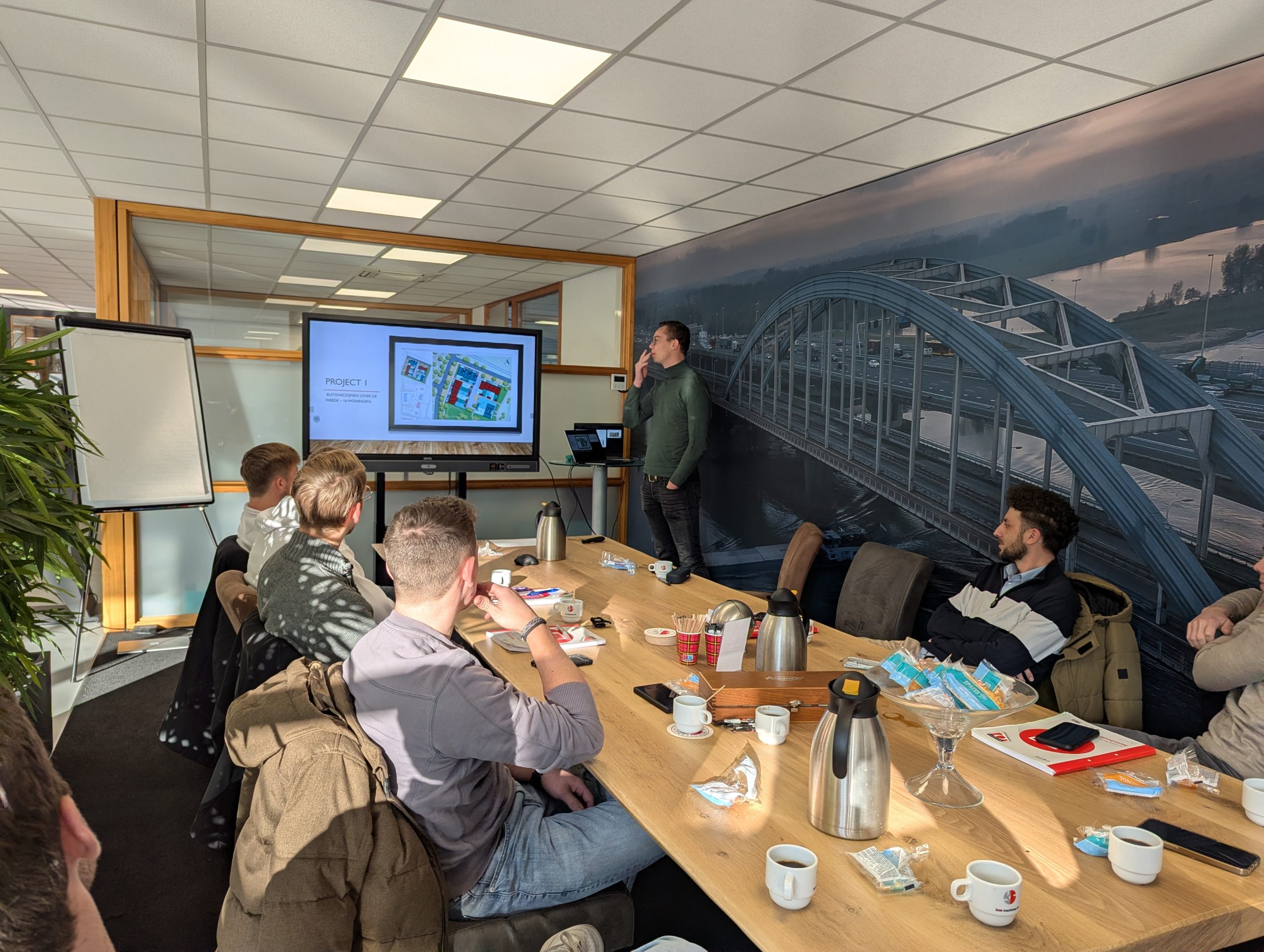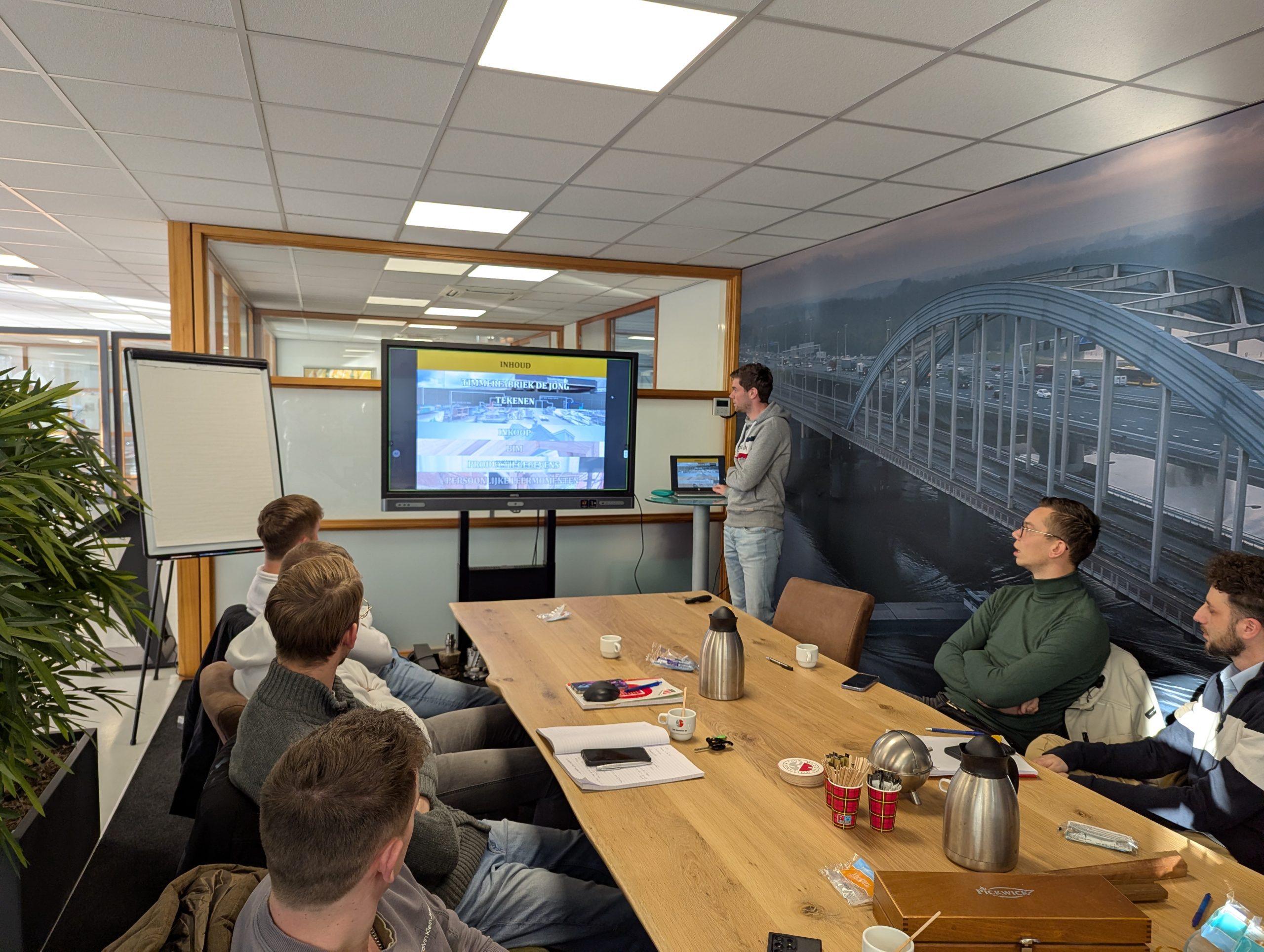 Na een korte koffiepauze nam Wim Suiker het programma over. Enkele deelnemers presenteerden hun ervaringen met Project 1, waarin zij een binnengekomen order volledig moesten tekenen en uitwerken. Het was mooi om te merken dat tijdens deze presentaties het besef groeide dat er op sommige punten nog verbetering mogelijk is. De meeste foutjes bleken te ontstaan door een combinatie van onwetendheid en gebrek aan ervaring, logisch wanneer je net begint in het brede en uitdagende vak van werkvoorbereider. Dit beroep vraagt simpelweg om veel vlieguren om tot een foutloos resultaat te komen.